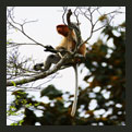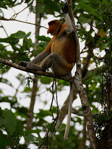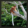 长鼻猴(The Proboscis Monkey)是东南亚婆罗洲岛(马来西亚、汶莱、印尼)上特有的珍稀动物。长鼻猴主要生存在婆罗洲岸边的红树林、沼泽及河畔的森林。欲探访野生长鼻猴的游客必须深入沼泽地带。