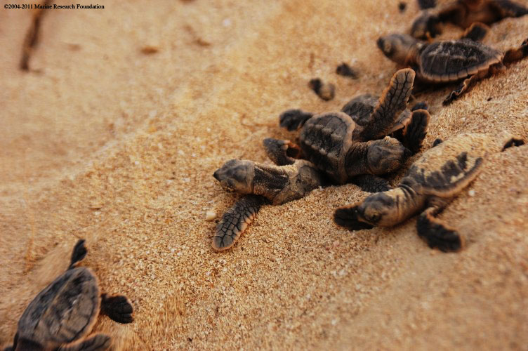 海龟上岸产卵后,岛上的孵育人员会把海龟卵转移至人造的孵化区。海龟卵将被埋在沙土下60至75厘米的沙槽中,以便模仿海龟筑巢产卵的习性。而这个孵化室则可以避免海龟卵遭到海龟天敌的侵食。